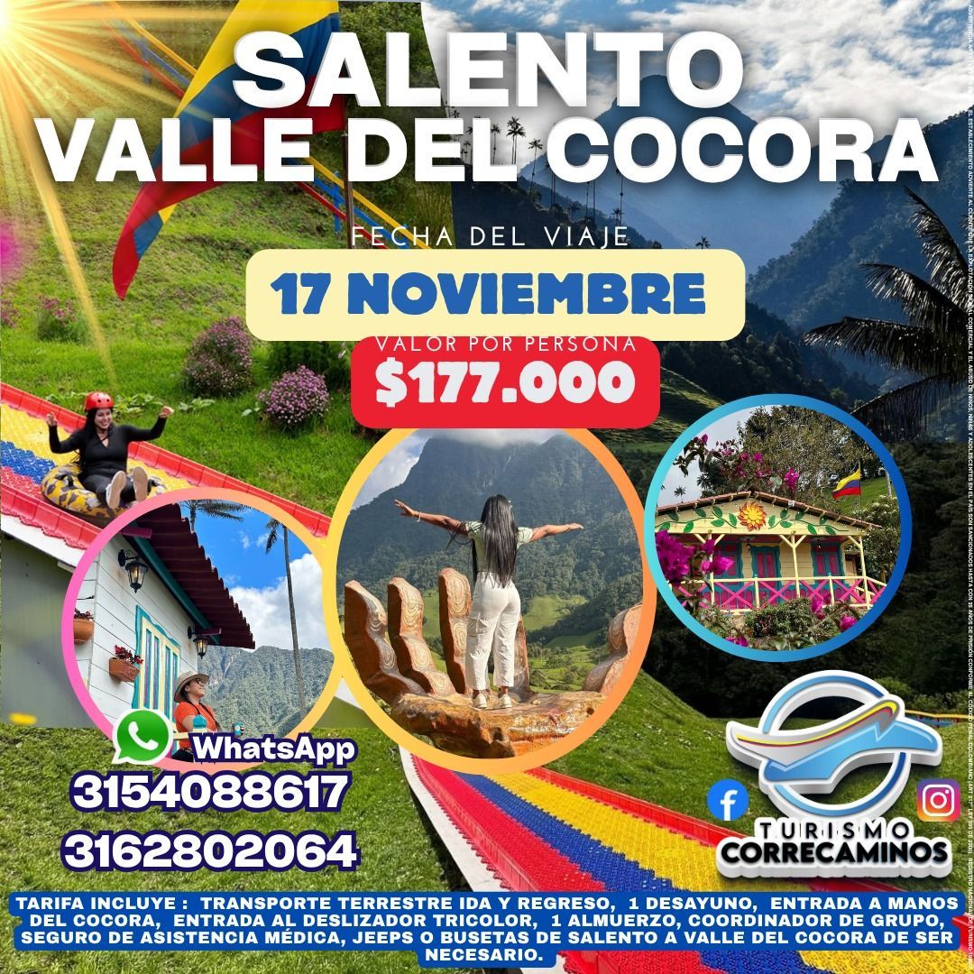 - Transporte terrestre ida y regreso ❖ 1 Desayuno ❖ Entrada a Manos Del Cocora ❖ Entrada al Deslizador Tricolor ❖ 1 Almuerzo ❖ Coordinador de grupo ❖ Seguro de asistencia médica. ❖ jeeps o busetas de Salento a Valle Del Cocora de ser necesario